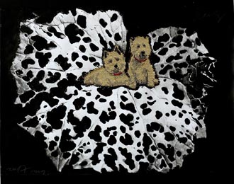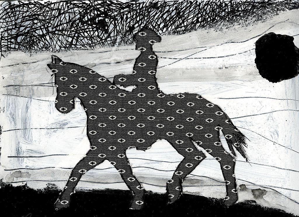 Tusche,Stoff, collagiert, 24x30 cm |