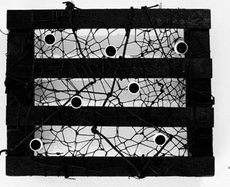 aus der Serie "Zustände", 2006 - 2017 Holz, Stoff, Farbe, Schnüre