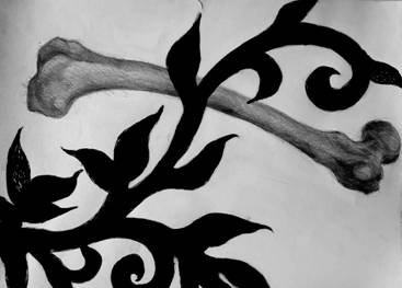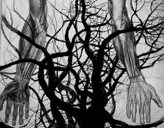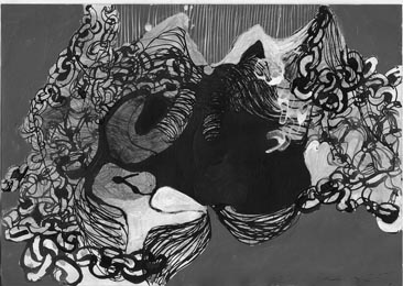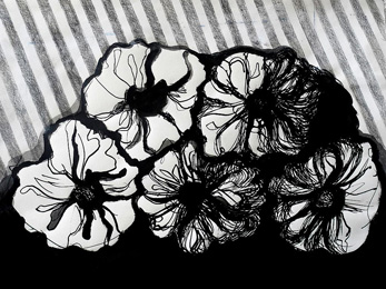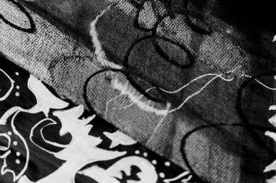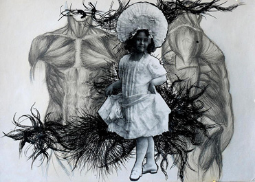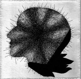 Tusche, Bleistift,Stoff,Filz collagiert, genäht